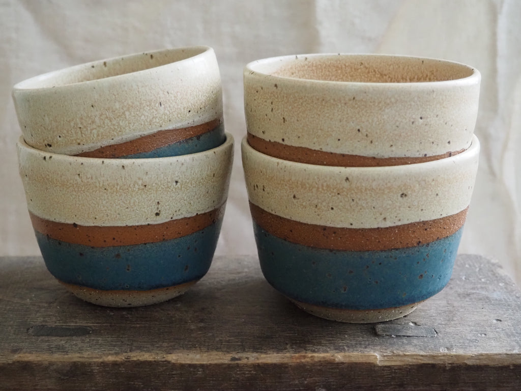 These cups were thrown on my potter’s wheel using speckled stoneware clay.