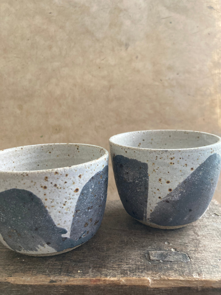 These small cups were thrown on my potter’s wheel using speckled stoneware clay.