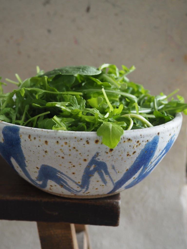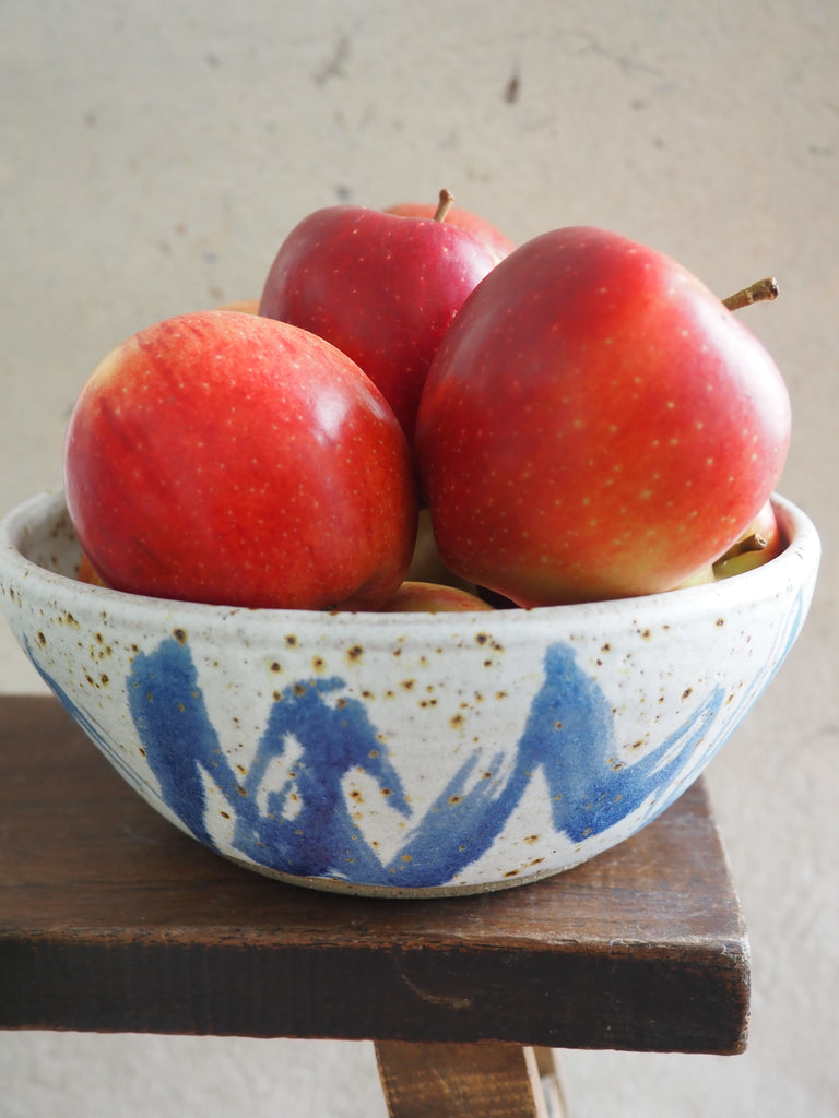 This large bowl was thrown in speckled stoneware clay on my potter’s wheel.