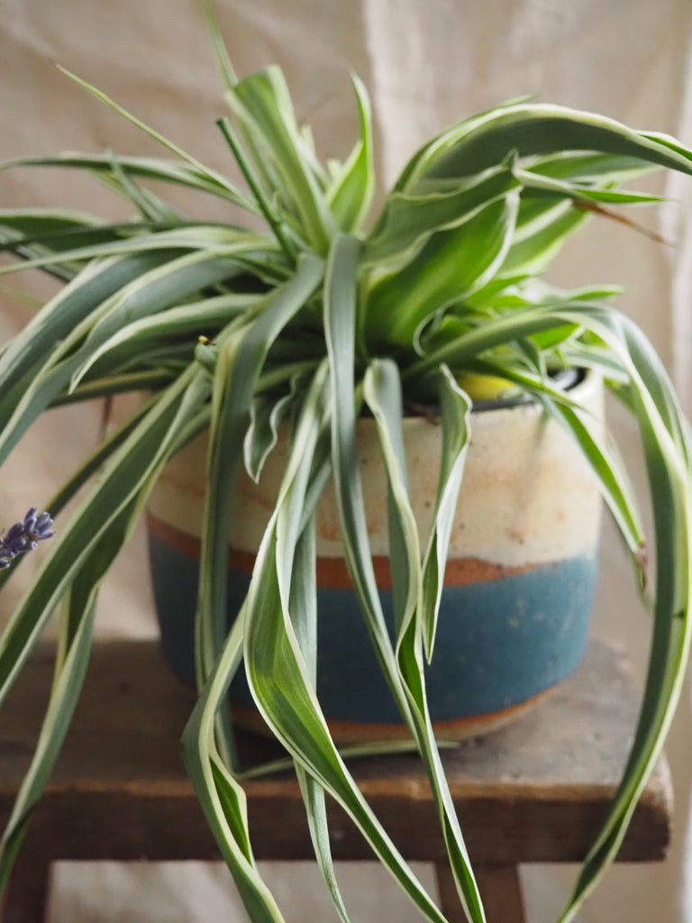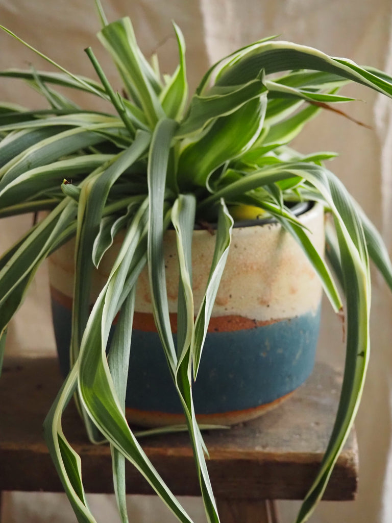 This large planter was thrown in speckled stoneware clay on my potter’s wheel. It has been glazed in cream and teal and there’s glaze magic where the two meet: reminiscent of beautiful sea spray.