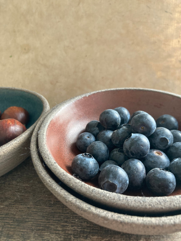 These small dishes were thrown in grey stoneware clay on my potter’s wheel.